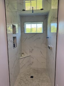 To ensure long-term water resistance and structural integrity, our team installed a Schlüter® waterproofing system beneath all tiled surfaces—creating a watertight barrier ideal for high-moisture areas like bathrooms. The tile selection, layout, and installation were all carefully coordinated to give the space a cohesive, high-end look while providing maximum durability.